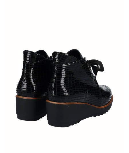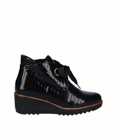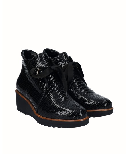 5 cm wedge ankle boot, made of the best quality leather. It has a removable insole system that gives us flexibility and comfort in the tread. Side zipper closure and optimal fit with front drawstring. Comfort, durability and versatility of 100% Spanish footwear. It has the guarantee of the D'Chicas brand.