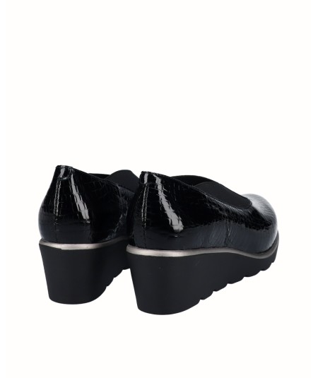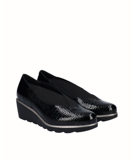5 cm wedge shoe, with rounded toe, made of high quality engraved leather. It has a removable insole system that gives us flexibility and comfort in the tread. "V" neckline to stylize the foot and elastic on the instep for an optimal fit. Comfort, durability and versatility of 100% Spanish footwear. It has the quality guarantee of the D´Chicas brand.