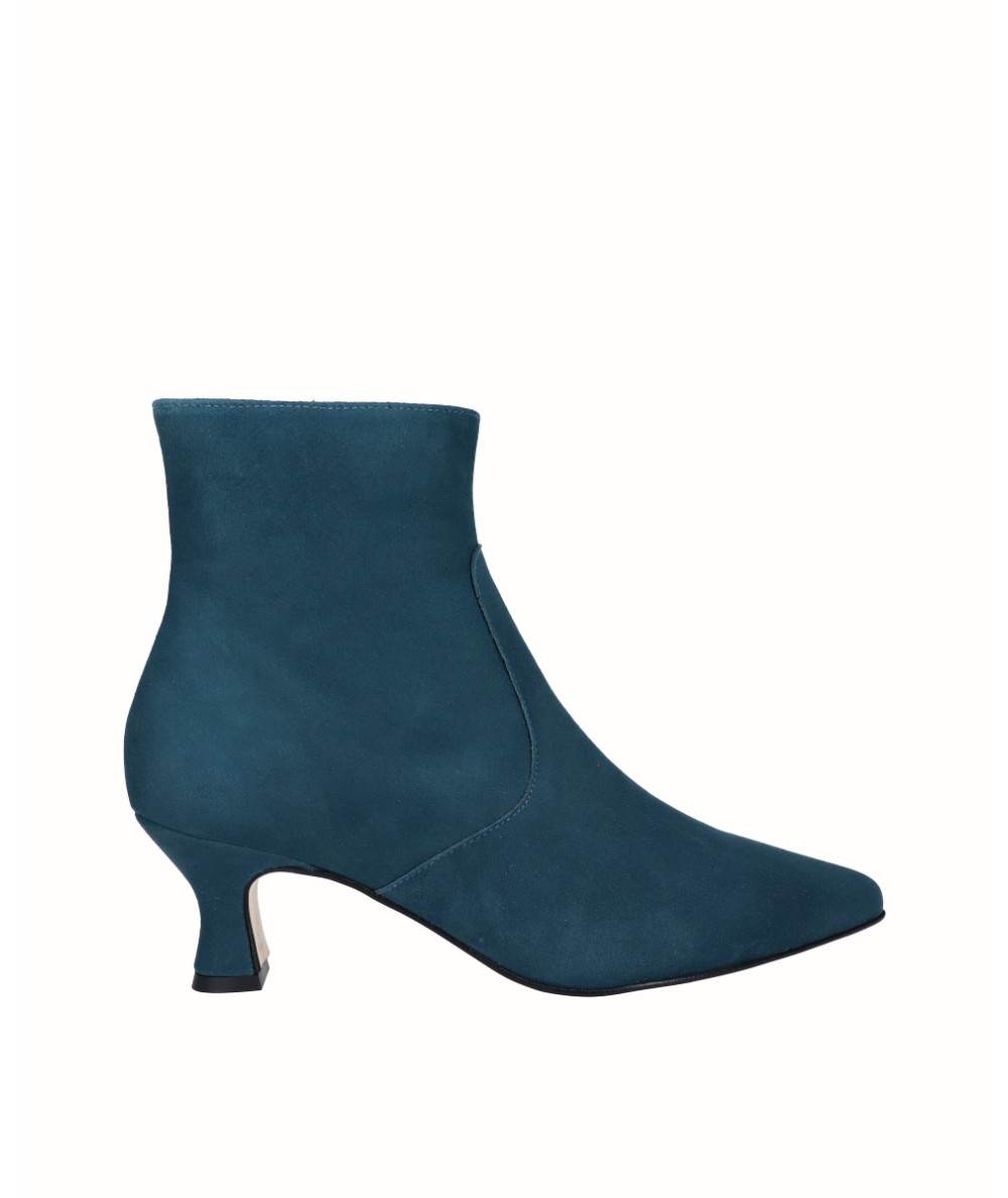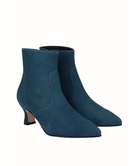 Blue suede heeled ankle boot