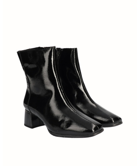 Ankle boot with a 4.5 cm heel and square toe, made of the best quality patent leather. It has a padded gel insole system and removable insole that provide flexibility to our footprint; They are comfortable and very light. Side zipper closure. Comfort, durability and versatility of 100% Spanish footwear. It has the guarantee of the D'Chicas brand.