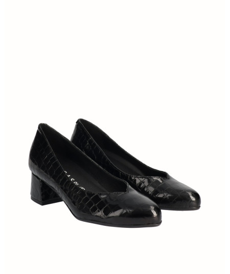 4 cm medium heel shoe, with rounded toe, made of the best quality engraved leather. It has a removable insole system that gives us flexibility and comfort in our footsteps. "V" neckline to stylize the foot. Comfort, durability and versatility of 100% Spanish footwear. It has the quality guarantee of the D'Chicas brand.
