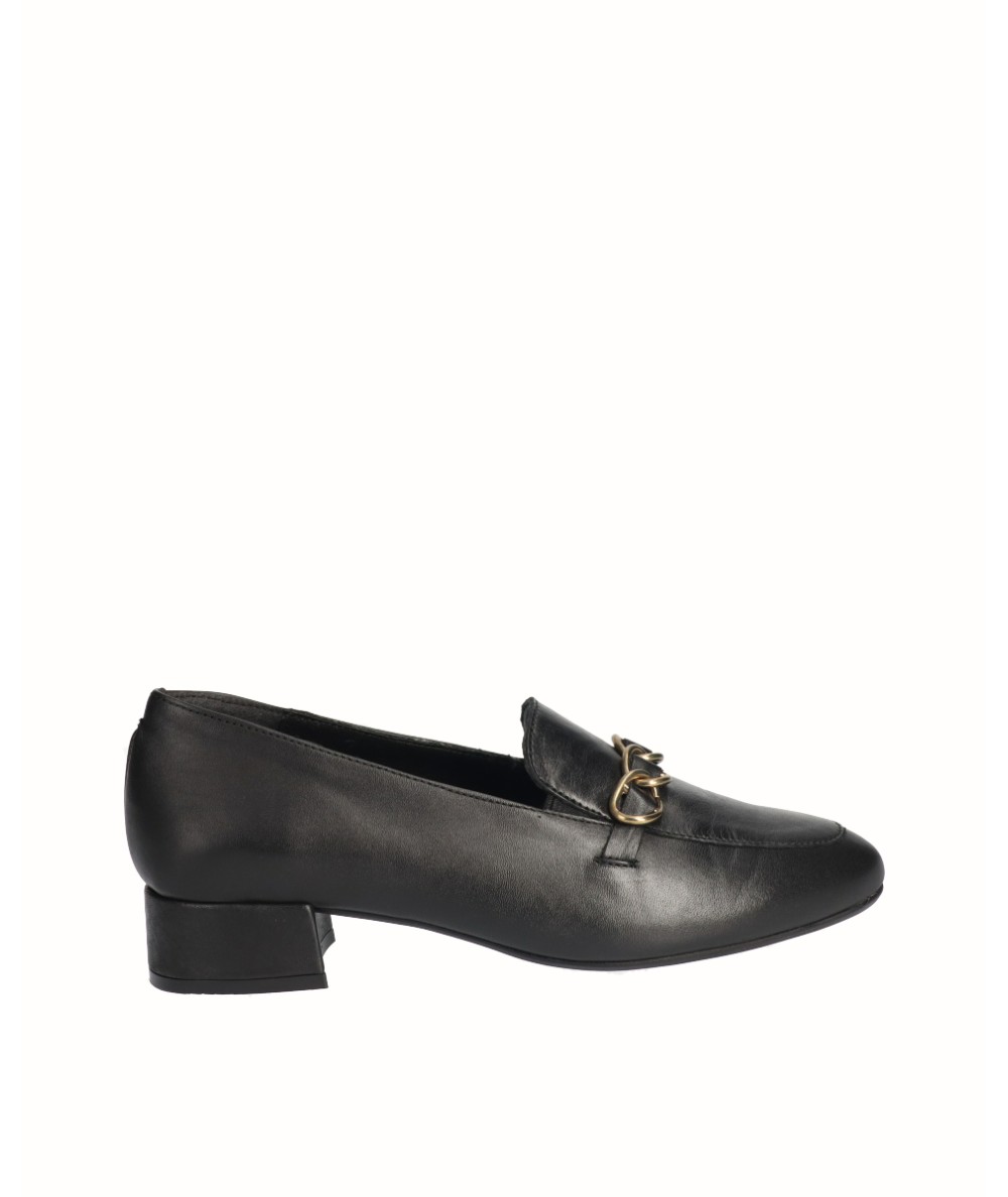 Zapato de tacón bajo de 3 cm,  con puntera cuadrada, fabricado en piel de la mejor calidad. Cuenta con una plantilla de piel acolchada que nos aporta flexibilidad y confort en la pisada. Incluye adorno cadena en el copete que le aporta un toque sofisticado. Comodidad, durabilidad y versatilidad de un calzado 100% español. Cuenta con la garantía de calidad de la marca D´Chicas.