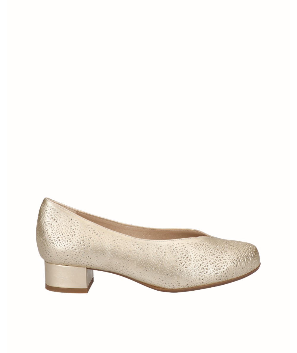 Zapato de salón de mujer  con puntera redondeada y tacón ancho de 3 cm. Fabricados en piel de la mejor  calidad, con suela antideslizante de goma y plantilla de gel y plantilla extraíble. Comodidad, durabilidad y versatilidad de un calzado 100% español. Cuenta con la garantía de calidad de D´Chicas.